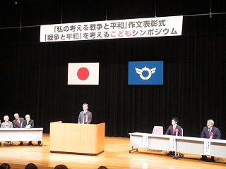 本日、戦後80周年事業「私の考える戦争と平和」作文表彰式、「戦争と平和」を考えるこどもシンポジウムが大津市のピアザ淡海で開催されました。滋賀県下から応募のあった作文の中から、本校2年生の川島 千明さんが銅賞に選ばれ、表彰式並びにシンポジウムがありました。表彰式に引き続き、受賞者は平和についてパネルディスカッションを行いました。川島さんも自分の考えを大勢の方の前でしっかりと話していました。