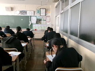 2学期末考査(3年生) 投稿日時: 2025年11月20日 投稿者: c15cnqwm 本日(11/20)と明日、3年生は2学期末考査を実施します。この期末考査は希望進路の実現に向けてもとても大切なテストです。どの教室も真剣にテストに取り組む姿勢が見られました。