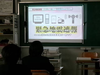 本日(12/9)、6校時に2学期の避難訓練として、「緊急地震速報の訓練」を行いました。緊急地震速報について学び、実際に机の下に身を隠す訓練を行いました。皆が真剣に取り組んでいました。
