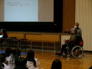 先日からお知らせしているように、本校では様々な人権週間の取り組みを行います。本日は、1年生と2年生で人権週間の取り組みが行われました。1年生では、NPO法人CILだんないの皆さん(代表 美濃部 裕道さん)に来校していただき、お話を聞いたり、寸劇を見たりしました。お話の中では、互いを認め合い、共に生きる姿勢を持つための社会モデルの重要性を学びました。ご多用な中、本当にありがとうございました。