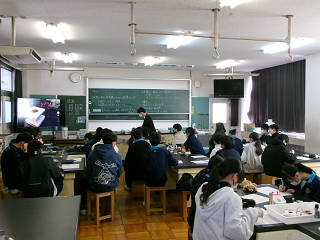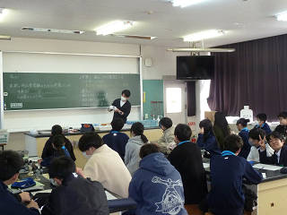 昨日(3/12)は理科の川端教諭が授業公開を行いました。これは、他の教師に自分の授業を見てもらうことで、自分では気づけない授業のクセや改善点が見えたり、逆に、他の先生の視点から良いところを認めてもらえる機会にもなったりします。また、授業後に意見交換をすることで、より質の高い授業づくりにつなげることを目的としています。2年生の生徒の皆さんは真剣に授業に取り組んでいました。