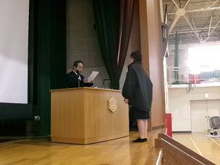 本日(12/23)の放課後、生徒会の新旧役員による「引き継ぎ式」を行いました。そして本日をもって、第79期生徒会の任期が終了しました。堂守会長をはじめ、生徒会役員の皆さん、一年間大変お疲れさまでした。そして、ありがとうございました。いつも明るく元気にまとまっていた生徒会だったと思います。