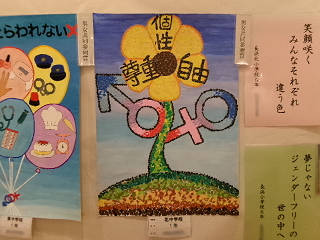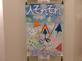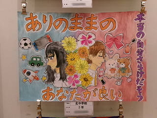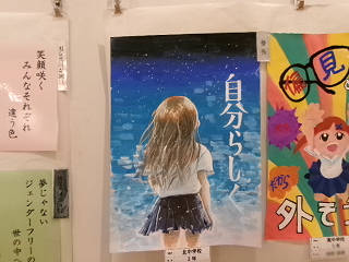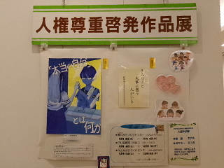 長浜市では毎年、市内の小・中学生の皆さんを対象に「人権尊重啓発作品」を募集しています。今日から市内の会場を巡回し、ポスターおよび標語の2部門で、最優秀・優秀・男女共同参画賞に輝いた作品が展示されています。本校の生徒作品も展示してありますので、ぜひ、ご覧ください。展示は12/3.4(長浜まちづくりセンター)、12/6~11(びわ図書館)、12/13~18(木之本まちづくりセンター)で行われます。