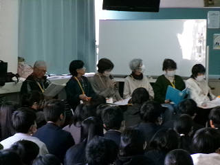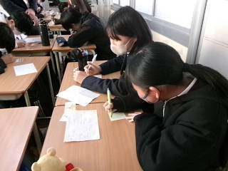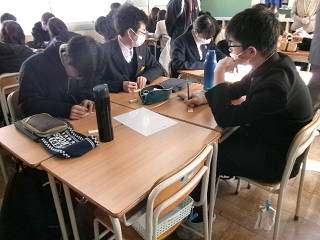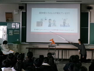 12月は人権月間です。本校でも様々な取組をお知らせしていますが、本日(12/4)、3年生は学年を2つに分けて、「認知症サポート講座」として、認知症キャラバンメイト「あじさい」のメンバーの方と社会福祉協議会の方にお越しいただき、認知症理解についての学習をしました。お話の中では、認知症とはどのようなものなのか説明を聞いた後、絵本や寸劇、グループワーク等を通じて学びました。特にクラスごとでの学びでは「認知症やお年寄りの方にしてあげられること」をグループで考えました。生徒たちは認知症への理解を含め、優しい気持ちで接することの大切さを学んだことと思います。ご多用の中ありがとうございました。