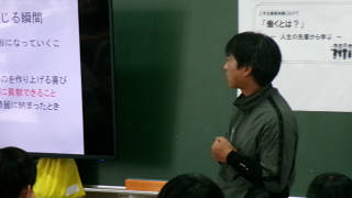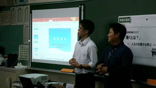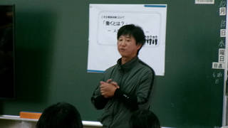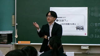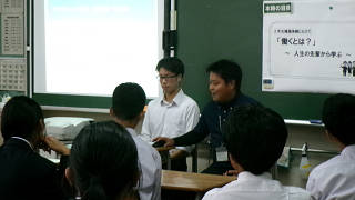 この取組は本校出身の先輩方を講師としてお迎えし、「職場体験学習」の事前学習の一環として今年度から始めて行われる活動です。この取組をきっかけとして、生徒が「働くということ」を考えたり、職業を知り、興味をもつことで、望ましい職業観を養い、職場体験学習へ向けての前向きな姿勢を形成することがねらいです。