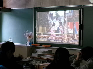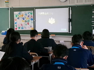 3校時は、曳山祭の学習です。長浜曳山祭は毎年4月に行われるお祭りです。京都の祇園祭、高山市の高山祭と並ぶ日本三大山車祭の一つに数えられており、国の重要無形民俗文化財にも指定されています。また、2016年にはユネスコ無形文化遺産へ登録されました。この祭は戦国時代に豊臣秀吉が長浜の町を築いたことをきっかけに始まったと伝わる、とても由緒ある祭です。当時、長浜は織物業などで栄え、町人たちは競い合うように豪華な曳山を制作しました。 その装飾は金具・彫刻・絵画など伝統工芸の粋を集め、「動く美術館」と呼ばれるほどです。また、長浜曳山祭りの最大の見どころが、曳山の上で演じられる子ども歌舞伎です。 演じるのは 小学生の男児(多くは10〜12歳) で、町ごとに選ばれた子どもたちが数ヶ月かけて稽古します。本校からも「しゃぎり」といわれる祭りで演奏される囃子(はやし)のために何人かの生徒が出演しています。