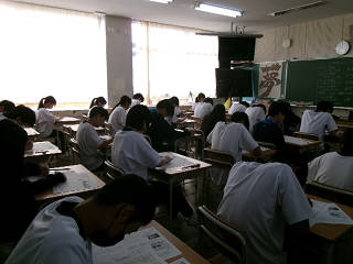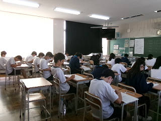 本日は2学期の中間テストの1日目でした。1,2年生は5・6時間目に、3年生は6時間目にテストを行いました。明日は3学年とも5時間のテストです。みんな頑張ってください。