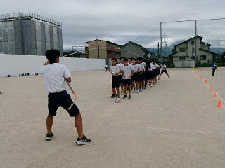 神照グラウンドに移動して、全員リレーの確認をしました。