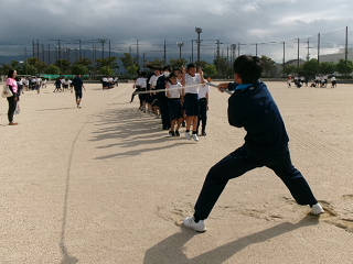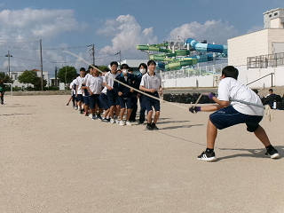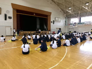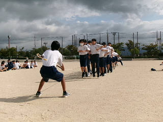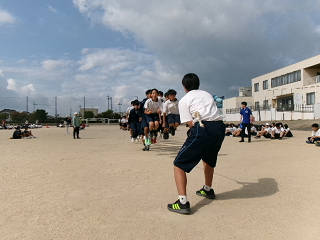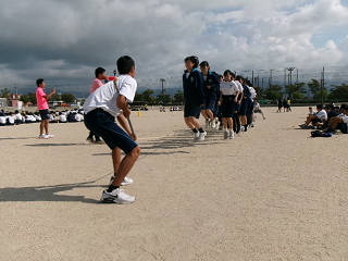 本日(9/16)、体育大会に向けた長縄練習が行われました。熱中症に気をつけ、休憩時間をとりながらの練習でしたが生徒たちは頑張っていました。写真は2年生の様子です。これから各学級が心を1つにして、少しずつうまくなっていくのが楽しみです。
