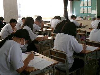 月日の流れは早いもので、本日(9/30)は1年間の前半、最後の日です。明日からは10月、1年間の後半が始まります。体育祭に向けた取組の最中ですが、本日、3年生は実力テストを行いました。また、10月14日(火)には、3年生とその保護者対象の進路説明会を行いますが、自分の希望進路の実現に向けた取組は日々の積み上げが重要です。焦らず、諦めず、毎日を大切にしましょう。