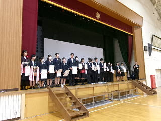 また、なかなか時間が取れずにできていなかった表彰伝達(運動の部)を行いました。多くの生徒が全校の前で表彰されました。おめでとうございます。