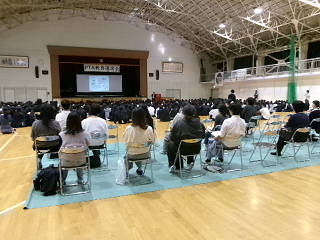 本日(10/24)、PTAの教育講演会として、株式会社 松村寝具の 松村 英祐 様に「みらいが変わる!中学生のための睡眠講座 削るなんてもったいない!~眠りの秘密を伝授~」というテーマで講演をしていただきました。