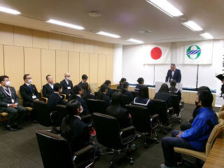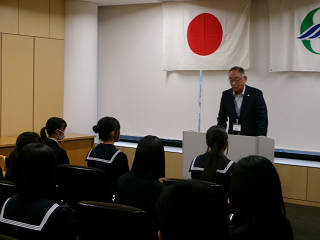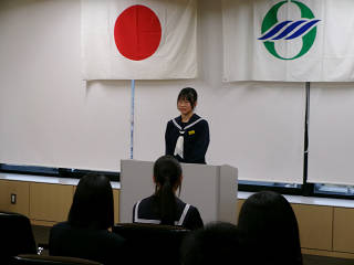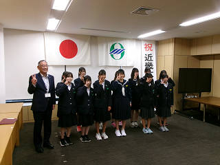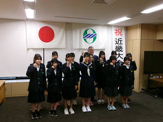 本日(11/27)、県駅伝で5位に入賞し、近畿大会(駅伝の部)への出場を決めた本校女子駅伝部も参加した長浜市主催の壮行会が開催されました。会では、教育長より激励の言葉をいただくとともに、出場に向けた意気込みを3年生の押谷 優衣香さんが力強く皆さんに伝えました。