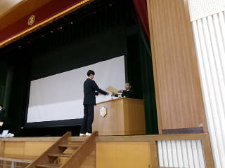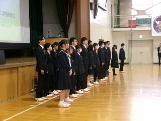 本日(12/23)の放課後、生徒会の新旧役員による「引き継ぎ式」を行いました。そして本日をもって、第79期生徒会の任期が終了しました。堂守会長をはじめ、生徒会役員の皆さん、一年間大変お疲れさまでした。そして、ありがとうございました。いつも明るく元気にまとまっていた生徒会だったと思います。