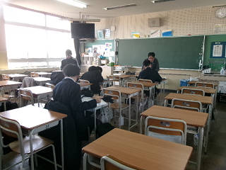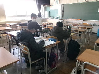 本日から1,2年生は、学年末テスト1週間前になります。放課後には2年生の質問教室が行われていました。今日から学年末考査に向けて部活動もお休みです。この1週間は、家庭学習でどれだけ力を伸ばせるかが大きな鍵になります。また、日々の授業もこれまで以上に大切にしてほしいと思います。毎日の積み重ねが必ず結果につながります。自分を信じて取り組んでください。
